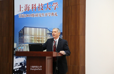 上科大iHuman研究所所长Raymond C. Stevens在发言中表达了自己对科学发现的热情,以及对上科大发展前景的信心,他鼓励新生们要做自己命运的主人,相信“一分耕耘、一分收获”,最大限度地利用好上科大提供的优质学术资源,挑战极限,探索真知。