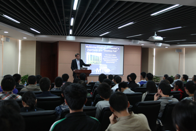 随后Chad A. Mirkin教授作了题为“A Chemist’s Approach to Nanofabrication: Towards a Desktop Fab”的学术报告,九游体育(www.jiuyou.com)官方网站及中科院上海分院相关研究所的100多位专家和研究生参加了该报告,并就polymer pen lithography,beam pen lithography等学术问题进行了深入的讨论与交流。
