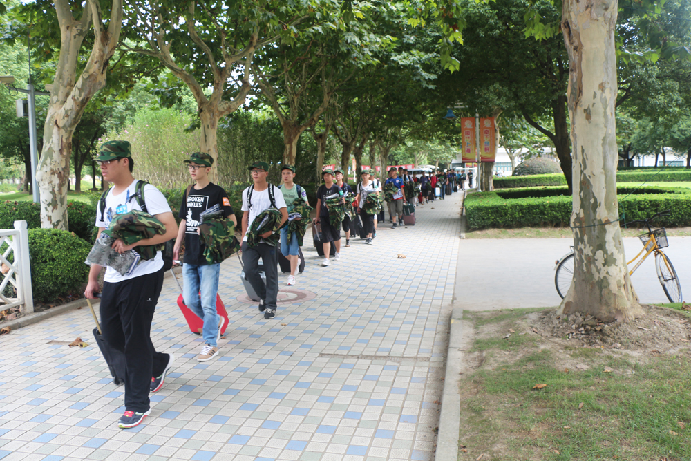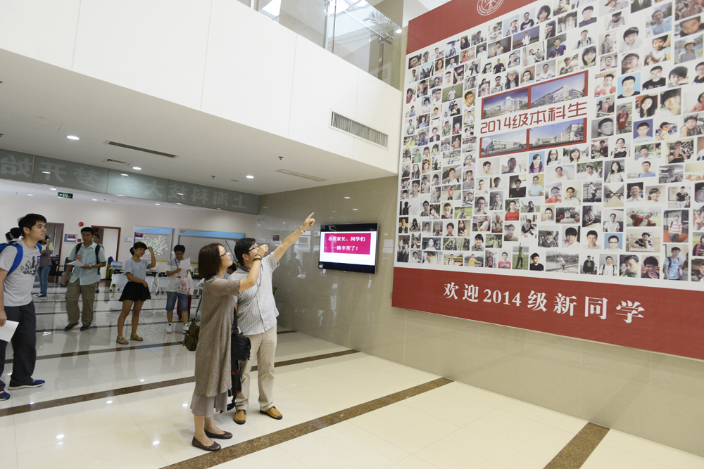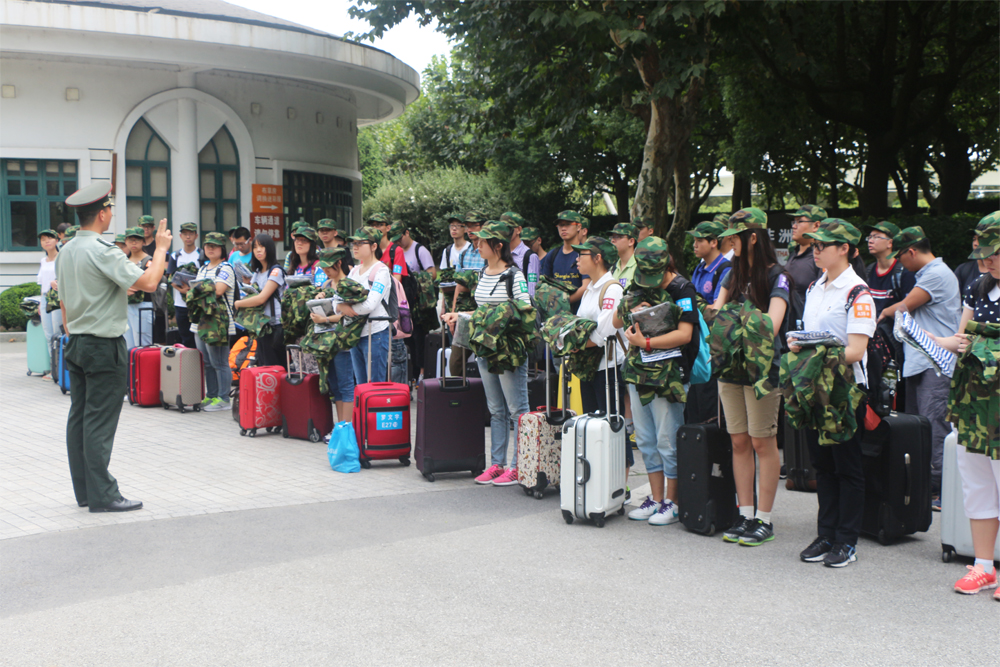 从上午8点起,新同学们陆续来到岳阳路校区8号楼,在流程单的指引下有条不紊地办理各项入学报到手续,然后分批乘车前往东方绿舟军训基地,开始为期14天的新生军训。在办理入学手续的间隙,许多新同学还不忘和陪同前来的家长在一楼大厅新生照片墙前留下一张幸福的合影。