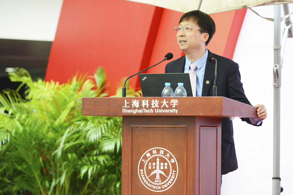 要建设一所小规模、高水平、国际化的创新型大学,一流的师资队伍是关键。上科大正在按照1:10–1:12的师生比,建设一支1000人规模的专任教师队伍,规划选聘500位常任教授及500位特聘教授。其中,常任教授主要来源于国际著名大学的知名学者和优秀青年学者,实行常任教授制(Tenure System);特聘教授主要来源于中科院上海分院研究(院)所的优秀科学家以及外籍著名教授。特聘教授代表,上科大物质学院教授、中科院上海有机化学研究所所长、中科院院士丁奎岭在发言中表示,德智兼修才能终成大器;成功来之不易,切勿轻言放弃。他鼓励同学们做独特的科学,有所发现和创造;做有用的科学,把科技创新与国家战略需求紧密结合。常任教授代表,上科大信息学院教授、副院长,IEEE会士马毅在发言中给同学们分享了四条求学经验:“笨鸟先飞早入林”、“千万别做林中鸟,得知道天有多高”、“知其然,更得知其所以然”、“做有能力独立思考的人”。