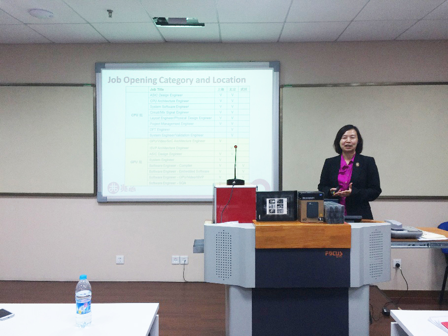 随后,人力资源高级经理孙荣赫女士凭借多年的工作经验,对技术人员如何进行职业规划做了分享报告,并介绍了公司的成立背景以及人才需求,同时热情邀请同学们来兆芯公司实习和就业。