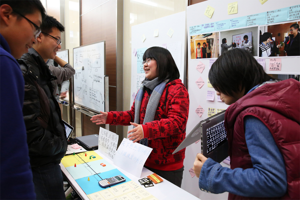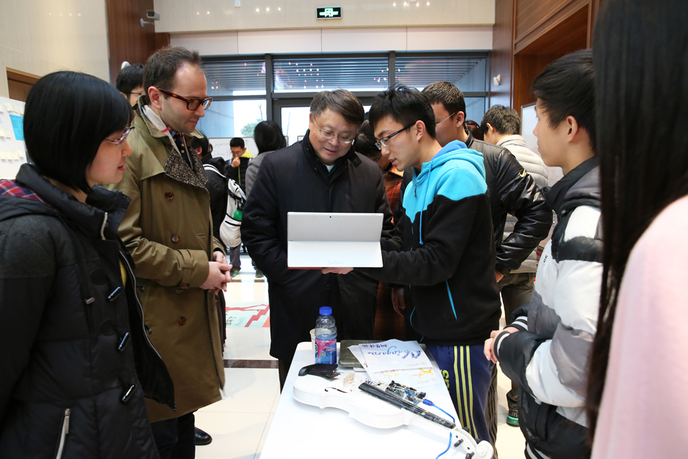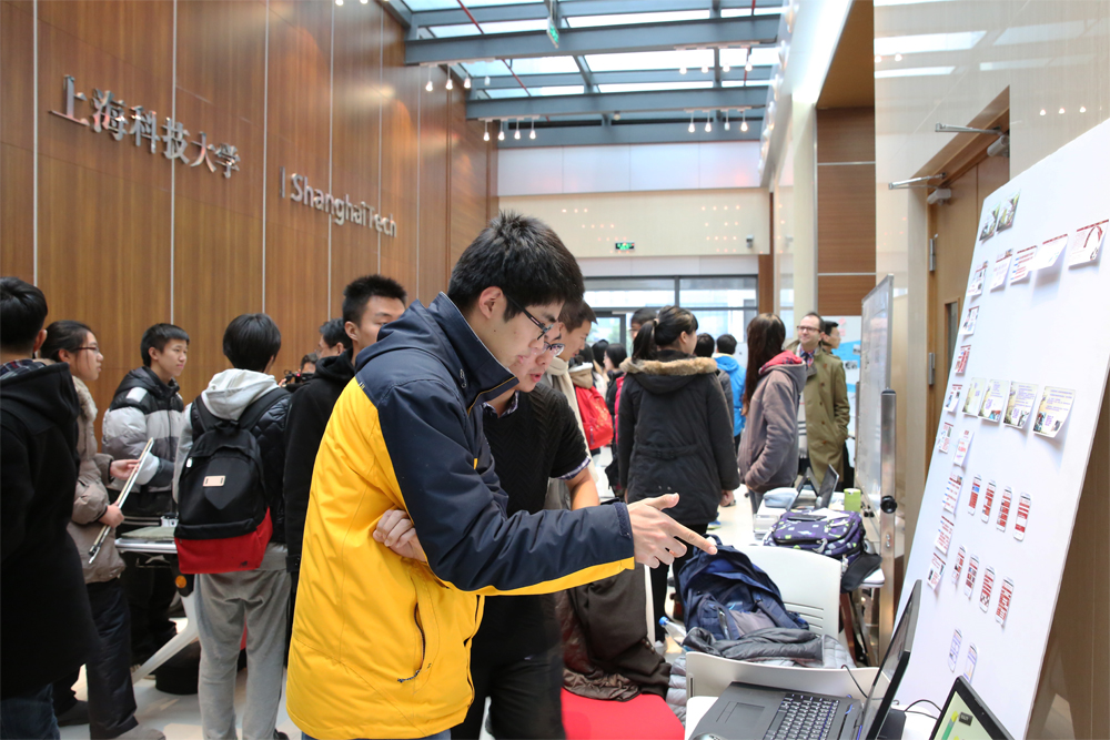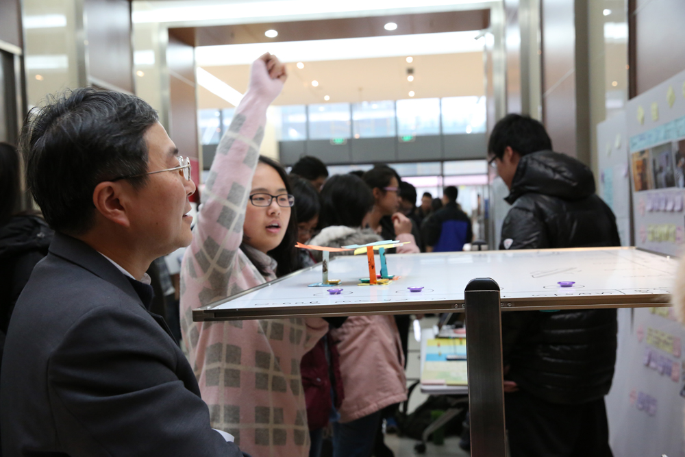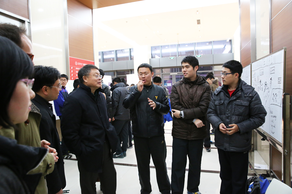 2015年1月16日下午,九游体育(www.jiuyou.com)官方网站创业与管理学院(以下简称“创管学院”)在张江校区组织开展了一场别开生面的应用创新设计作品展。在本学期学习了《应用创新》课程(原《设计思维》)的首届大一本科生以及在《设计思维与可持续发展》课程中表现突出的2014级研究生代表为展览带来了30多件作品。校领导、常任教授和中科院特聘教授、本科生、研究生和外校学生前来观摩了本次作品展。