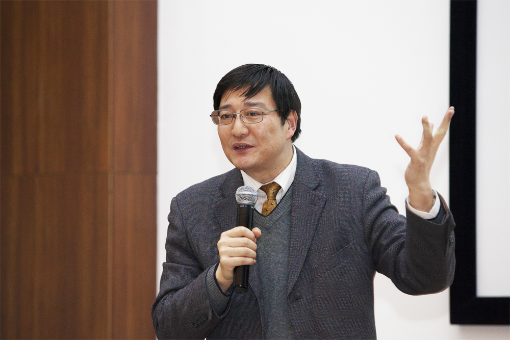 2015年3月11日晚,书院“信仰的力量——上海市思政名师社会主义核心价值观进课堂”系列讲座第一讲在张江校区行政楼报告厅举行。此次报告以“富强——人间正道是沧桑”为题,由上海市思政名师工作室——李梁工作室的三位老师共同完成。报告形式新颖和独特,首先由主持人介绍讲座分段主题的背景,引出其中的系列问题,再由全国高校优秀思政理论课教师、上海大学社会科学学院副院长李梁副教授进行解答和主讲。