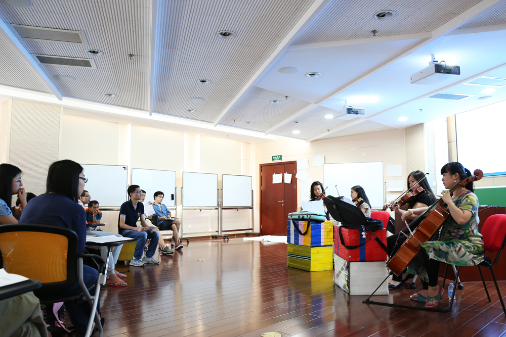 Nuturing Creative Intelligence课, 同学通过聆听领悟音乐与物理、数学、建筑的关系