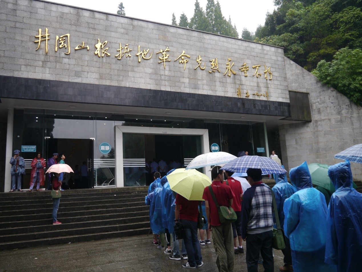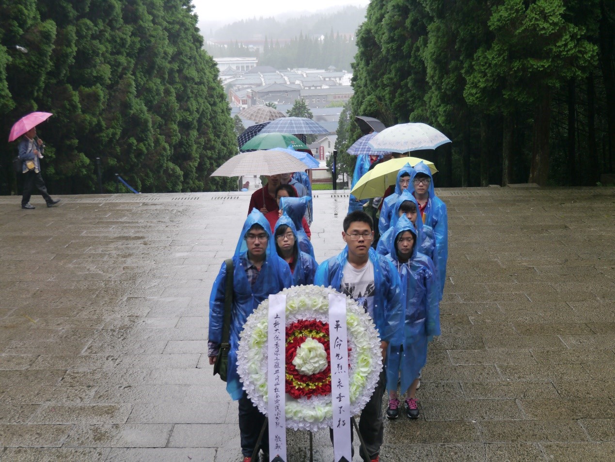 清晨,我们冒雨来到井冈山革命烈士陵园,悼唁那些为革命献出生命的先辈。前来吊唁的人很多,有散客,也有穿着红军服的学员,服装各异,而心情却是相同:沉重,悲伤,崇敬。在井冈山斗争的短短两年零四个月中,除去有名有姓的15744人外,更有上30000多名无名先烈长眠于此。祭献花圈后,我们在汉白玉无字碑前静静地聆听那些英雄故事,听他们为了保存革命力量抛撒热血,听他们为了共同的理想毁家纾难。既已投身党的事业,粉身碎骨亦不怕,严刑拷打奈我何!献身于此的英烈永垂不朽!我看到,许多同学都在解说员的解说过程中红了眼眶……那么就让这份感动化为我们在自己的学习、事业中艰苦奋斗的动力吧,井冈山斗争虽已远,井冈山精神仍光辉。我们当继承先烈的品格与精神,珍惜眼前的和平与优异条件,生命不止,奋斗不息。
