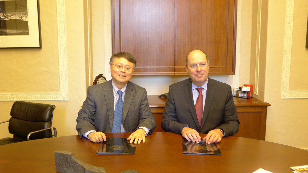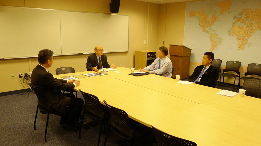 9月23日,校长江绵恒、党委书记朱志远及物质学院光子科学与凝聚态物理部主任刘志一行访问了麻省理工学院(MIT),与教务长Martin Schmidt及教务长办公室国际事务处主任Bernd Widdig进行了会谈。双方就在学生交流、学术科研等方面开展合作进行了深入的探讨和交流。