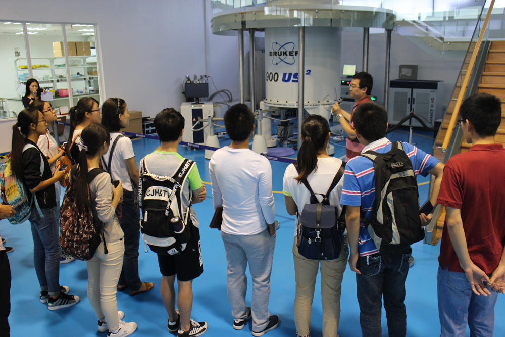 黄研究员生动有趣的介绍更加激发了大家对蛋白质中心的好奇,在随后的提问环节和参观过程中,同学们也更深入地与黄研究员以及蛋白质中心的专家交流,询问与探讨一系列问题。例如,与其他诸如红外光谱、紫外光谱、核磁共振等技术相比较,质谱技术的优缺点是什么?质谱技术为什么需要气相色谱、液相色谱的前置分离?质谱技术如何应用于有手性的分子?蛋白质中心的专家也都为大家耐心地一一解答。同时,中心里各类新奇高端的测试分析合成仪器也让大家眼前一亮;专业先进的仪器将科研人员从简单重复的操作中解放出来,把更多的精力集中在创新思考上。大家在意犹未尽中结束了本次活动,作为我们的近邻,蛋白质中心非常欢迎同学们能经常前来学习交流。