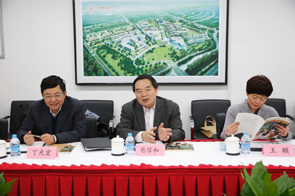 2016年1月6日,复旦大学常务副校长包信和一行来访我校,校长江绵恒、副校长兼教务长印杰参加座谈交流会。在听取了上科大工作进展和两校合作情况介绍后,双方就如何在课程教学、教师培训、科研合作、校园资源共享等方面进一步加强合作进行了深入交流,达成了一系列共识。
