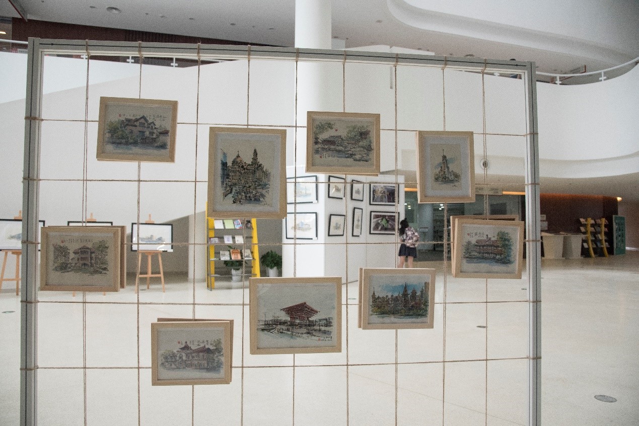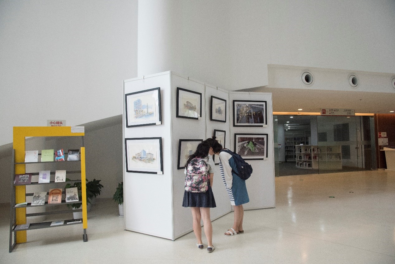在“城市的温度:我眼中的上海”主题展览中,图书馆邀请到了被“乐游上海”、“上海发布”等公众号转发而爆红朋友圈的上海系列经典坐标手绘版作者、建筑师刘开海以及毕业于中国美术学院国画系的画家陈奇先生。另外,图书馆也与校摄影社与学生记者团共同合作,以“我眼中的上海”为主题面向上科大学生征集主题摄影作品。该展览通过建筑师、画家笔下的手绘作品与上科大同学们镜头中的摄影作品,共同向观众们呈现他们眼中的上海。刘开海先生也特别为各学院、报告厅、学生活动中心、教学中心、塔楼、图书馆、体育馆等上科大经典坐标创作了手绘作品。刘开海先生说,与画家陈奇、上科大学生一起记录与再现上海的都市意向是一件有意思的事情。他表示,这只是一个开始,希望此次展览能够与更多不同专业人交流之后,对于城市的变迁,会有新的人文体察与发现。同时,上科大图书馆结合展览主题,也精心准备以海派文化为主题的系列延伸阅读书目,希望大家在欣赏手绘上海作品的同时,能够通过阅读更好地了解我们身处的这座城市。