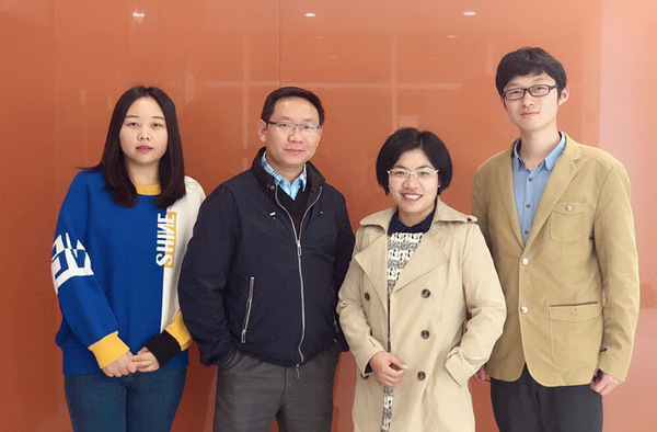 图4.第一作者和通讯作者钟超教授合影(从左至右:刘苏莹、钟超、黄娇芳、张琛)
