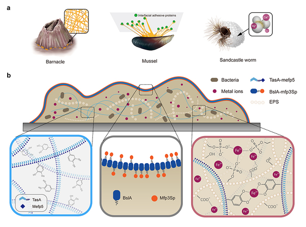 图1 自然界海洋生物灵感的活体生物被膜粘合材料