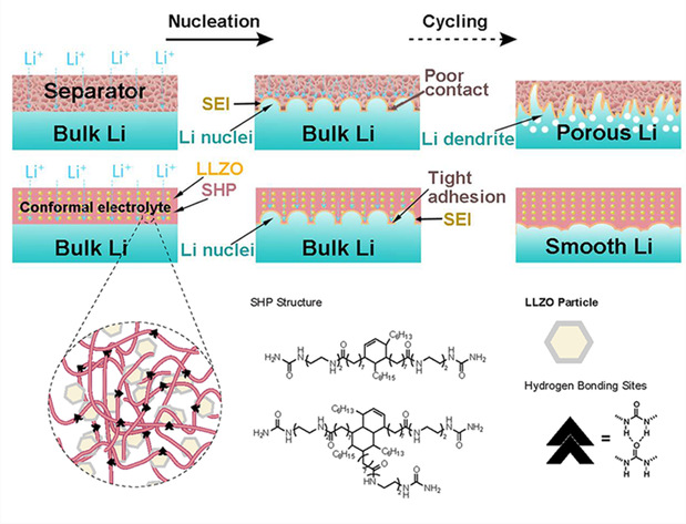 自修复电解质与锂金属负极的作用机制示意图