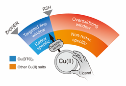 锌和铜都是生命体不可或缺的微量元素。哺乳动物体内很多重要的酶和蛋白质的核心功能单元都具有锌硫配位键。其中,在众多生理过程中起了关键作用的锌指蛋白编码序列在全基因中占有异常高的比例,达到了约1%。但是,锌硫配位单元却容易被以二价铜为代表的氧化剂所氧化破坏。因此,好氧生物体经过长期进化,构筑了以细胞内高浓度的硫醇和NAD(P)H为基础的还原性防护机制,通过对进入细胞内的氧化剂进行还原淬灭,为锌硫蛋白等易受氧化损伤的关键生理功能位点提供严密的还原性保护,从而抑制了氧化性环境带来的有害损伤。通俗而言,这一机制的功能类似于保护计算机系统免受病毒攻击的防火墙。在经典生物化学认知范式里,二价铜离子进入细胞后会被硫醇/NAD(P)H还原成一价铜离子,从而失去了其对锌硫配位单元固有的氧化破坏能力。
