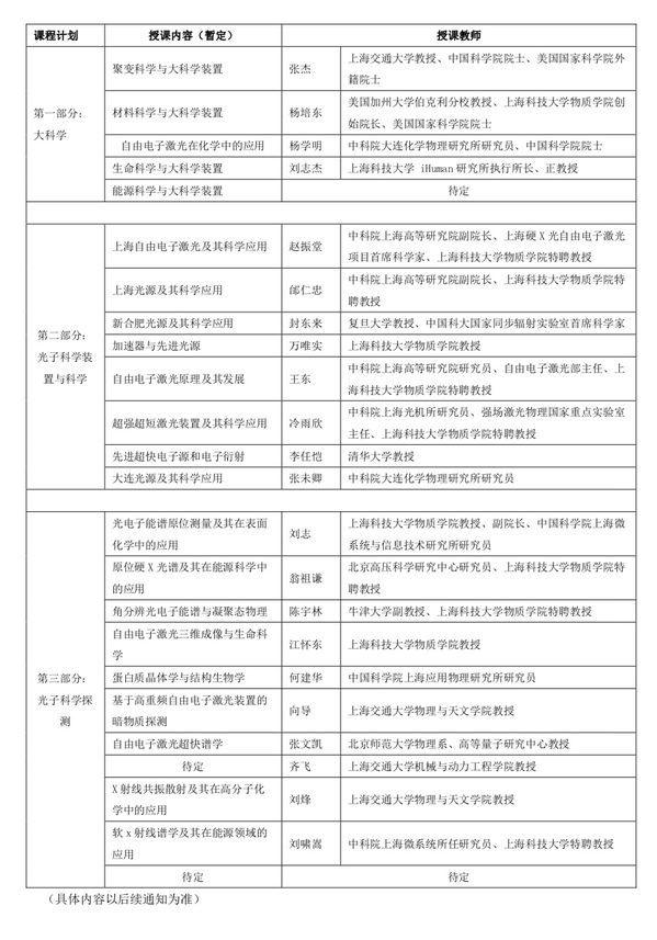 现将课程师资和日程安排,以及后续录取、缴费事宜通知如下: