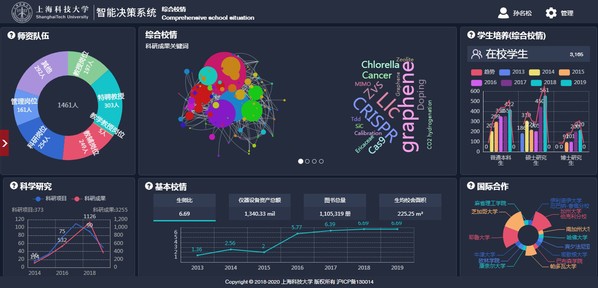 行为分析与智能决策系统是在智能化校园各类业务系统的基础上,从学校和院所部门的决策需求出发,围绕学校教学、科研、学生培养、管理等活动,全面汇聚各个业务系统的多维度数据。该系统通过综合仪表盘和多层关联深钻的方式,提供对学校各方面情况的深度数据融汇、智能关联、多维分析、可视化展示,支持全方位校情感知,同时以问题为驱动,用数据作为支撑,辅助支持学校在教学、科研、管理效能等方面作出决策。