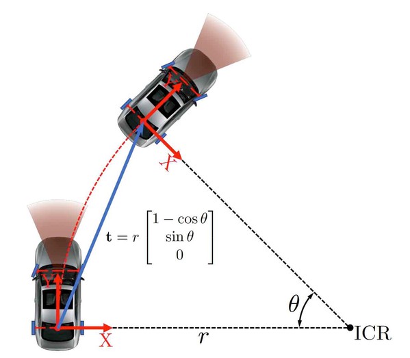 “The Alignment of the Spheres: Globally-Optimal Spherical Mixture Alignment for Camera Pose Estimation”一文中,课题组研究在仅知3D模型纯几何信息情况下的跨模配准问题,并将其转换为一个2D-3D混合模型的对齐任务,其求解依赖于全局最优的分支定界搜索算法,研究思路见图5。“Motion Estimation of Non-holonomic Ground Vehicles from a Single Feature Correspondences Measured over n Views”一文中提到受平面tri-focal tensor及其处理线特征能力的启发,研究人员对车辆的局部圆周运动建立了可任意扩展的n维线性约束(见图6)。上述研究成果出自Laurent Kneip教授课题组。