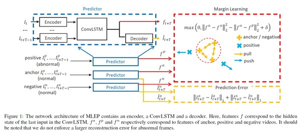 高盛华教授课题组在“Open-set Supervised Video Anomaly Detection with Margin Learning Embedded Prediction”一文中提出一种基于度量学习的视频未来帧预测的开集(open-set)场景下的异常行为检测框架(见图11),大量的实验证明了所提出方案的有效性。