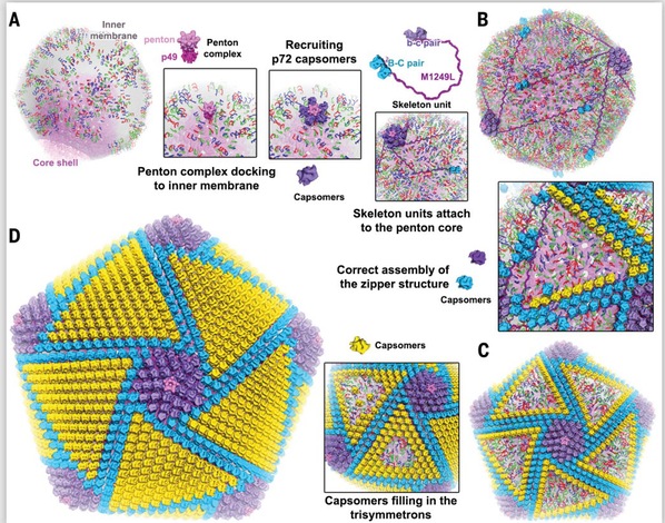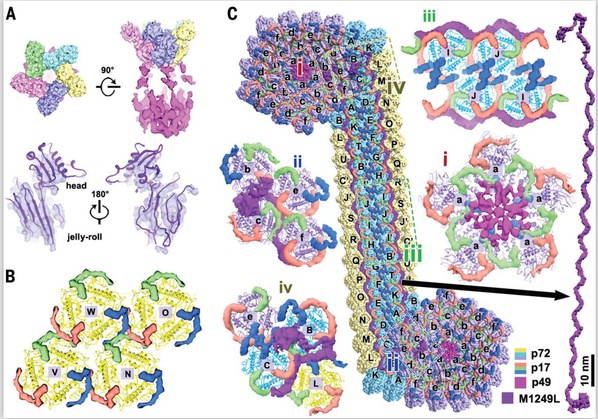 2013年以来研究团队解析了五类三十余种全病毒原子分辨率的结构,从结构比较中可以看到非洲猪瘟病毒(ASFV)是一个十分巨大、复杂的病原体