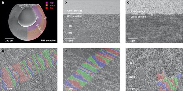 图2:干燥后胶体液滴形成的超晶格结构的电镜分析