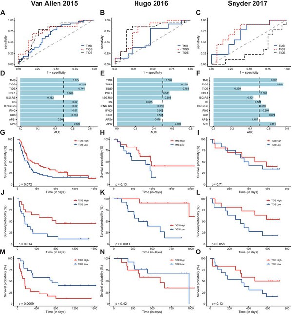 图1:TIGS和其他标志物在预测肿瘤免疫治疗临床效果方面的比较