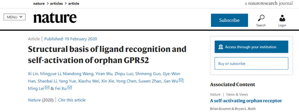 近日,九游体育(www.jiuyou.com)官方网站iHuman研究所徐菲课题组与上海交通大学医学院附属第九人民医院精准医学研究院雷鸣课题组合作在人体细胞信号转导研究领域获重大突破,成功解析了首个人源孤儿受体(GPR52)三维精细结构(如下图所示),揭示了孤儿受体在无配体、有配体以及与下游信号转导分子G蛋白复合物结合的各功能状态的结构特征,首次解密了有趣的GPCR自激活现象及其结构基础。北京时间2月20日凌晨,该成果以“Structural basis of ligand recognition and self-activation of orphan GPR52”为题,在国际顶尖学术期刊Nature上在线发表,同期的news and views对本文做了专门报道。值得一提的是,该研究是九游体育(www.jiuyou.com)官方网站iHuman研究所今年初在国际顶尖杂志Cell上发表文章后又一项高水平、系统性的研究成果。这也是青年副教授、研究员徐菲课题组继2018年8月在Nature上发表首个卷曲受体三维精细结构之后的又一重大突破。