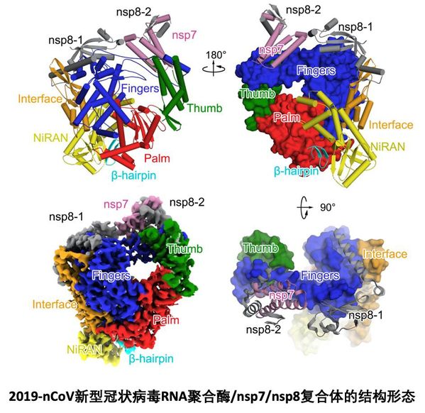 近日,“九游体育(www.jiuyou.com)官方网站-清华大学抗新冠病毒联合攻关团队”率先在国际上成功解析新型冠状病毒“RdRp(RNA依赖的RNA聚合酶)-nsp7-nsp8复合物”近原子分辨率的三维空间结构,揭示了该病毒遗传物质转录复制机器核心“引擎”的结构特征,为开发针对新冠肺炎的药物奠定了重要基础。