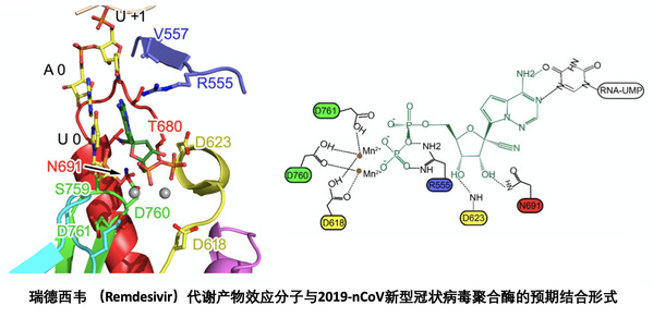 新型冠状病毒在入侵细胞后,便开始大量复制;而病毒的RNA依赖的RNA聚合酶(RdRp,也被称为nsp12)在病毒的遗传物质——RNA的合成过程中起着至关重要的作用。以RNA聚合酶为核心,病毒会巧妙地利用其它辅助因子(如nsp7/nsp8等)组装一台高效的RNA合成机器,进行自我复制。RNA聚合酶作为这台复制机器的核心部件,是最重要的抗病毒药靶之一。破坏该核心设备的功能,就能阻止病毒的复制,最终达到治疗的目的。而瑞德西韦恰恰就是一个靶向RNA聚合酶的前药,当药物进入人体,通过代谢后,其最终产物就直接靶向抑制病毒的RNA聚合酶。2020年1月25日,蒋华良院士和饶子和院士领衔的九游体育(www.jiuyou.com)官方网站免疫化学研究所与中国科学院上海药物研究所抗新冠病毒联合应急攻关团队,通过药物筛选发现了30种可能具有抗新冠病毒效用的药物或活性天然产物,其中就包含瑞德西韦。最近有报道称,国外医疗机构对一名新冠肺炎重症患者在同情用药的原则下使用了瑞德西韦,该患者病情迅速缓解。因此,瑞德西韦被认为是一个在新冠肺炎的治疗中颇具前景的临床药物。目前,瑞德西韦临床试验已在中国开展,由中日友好医院、中国医学科学院药物研究所牵头,在武汉金银潭医院等多家抗疫一线医院中进行,计划入组761例患者,结果预计在4月27日公布。但是,由于缺乏新型冠状病毒RNA聚合酶的三维结构信息,瑞德西韦如何精确靶向病毒RNA聚合酶的机制尚不明确,这是当前针对该靶点开展更有效的抗病毒药物开发及应用的重要障碍之一。