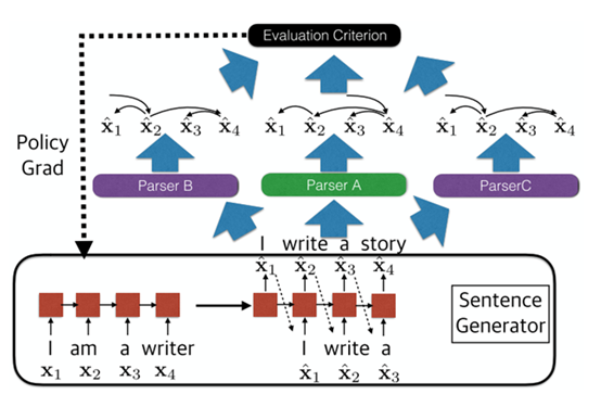 在主会论文 Adversarial Attack and Defense of Structured Prediction Models 中,课题组研究了自然语言处理结构预测问题上的对抗样本生成。对抗样本是指目标预测器易于出错的样本,找到对抗样本有利于提升模型的鲁棒性并提升模型的效果。目前绝大多数对抗样本方向的工作都是针对图像领域和自然语言处理领域中的分类问题,针对结构预测的对抗样本研究仍是空白。屠可伟课题组针对于这一问题,提出了一种基于强化学习的对抗样本生成架构,超越了传统方法的性能,并具有黑箱、在线、可变句子长度等优势。屠可伟课题组2020届博士毕业生(现新加坡国立大学博士后)韩文娟和2018级博士生张力文为本文的共同第一作者,屠可伟教授为通讯作者。项目获得国家自然科学基金委支持。