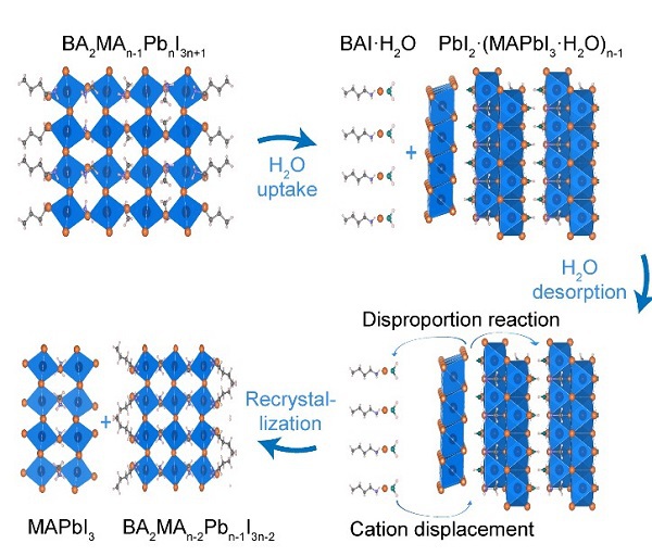 有机无机杂化钙钛矿材料的维度调控工程被认为是解决其本征环境不稳定问题、推进其商业化发展的关键技术手段。通过维度调控得到的二维钙钛矿材料具备特殊空间构型,展现出了优异光电性能及稳定性,成为此领域新的发展方向,而进一步提高其综合性能则依赖于对其本征工作机制的深入理解和把握。自从2014年二维钙钛矿应用于太阳能电池以来,已有大量研究通过材料及结构设计提高了二维钙钛矿的光电性能及稳定性,但仍有一系列机理性问题亟待解决,如二维钙钛矿材料在薄膜中的空间分布、二维钙钛矿薄膜中各物相结合作用方式、二维钙钛矿环境稳定性机制等,这些都决定了薄膜的本征特性,深刻影响着薄膜综合性能。