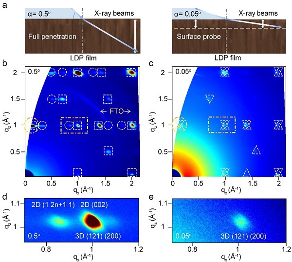 图:应用同步辐射X射线衍射技术对二维钙钛矿薄膜的结构进行系统的表征