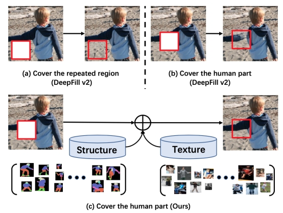 图 | 基于先验的人体补全与传统图像补全算法差异