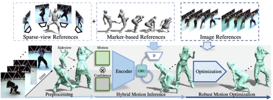 图| 利用多模态参考对单目3D复杂运动进行人体动态捕捉的算法框架图