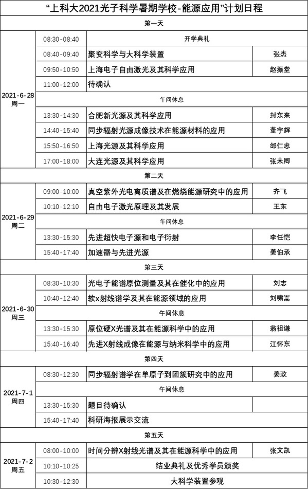 九游体育(www.jiuyou.com)官方网站牵头或参与了张江的一系列国家级大科学装置建设,如软X射线自由电子激光用户装置、硬X射线自由电子激光装置、活细胞结构和功能成像等线站工程、超强超短激光实验装置、上海光源二期线站工程(纳米自旋与磁学线站、高性能膜蛋白晶体学线站)等。为发挥张江综合性国家科学中心大科学装置建设的优势,推动以“大跨度、多学科交叉”的先进平台为依托的科研创新,提高研究生的创新意识和创新能力,促进国内外学术交流和合作,有效培育设施用户,九游体育(www.jiuyou.com)官方网站计划于2021年6月28日-7月2日期间,举办“光子科学(能源应用)”为主题的暑期学校。