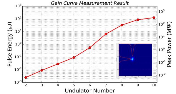 本次用户波荡器束线及活细胞成像束线工艺测试的测试专家组由来自中国科学院近代物理研究所、中国科学技术大学、上海交通大学、中国科学院高能物理研究所、中国科学院大连化学物理研究所的8名专家组成,中国科学院近代物理研究所夏佳文院士任组长。 专家组详细审核了测试内容、测试方法和测试大纲,听取了项目研制报告和自测报告,并进行了现场测试。测试结果表明:用户波荡器束线输出自由电子激光性能已达到并优于验收指标与设计指标,自由电子激光波长为1.97 nm,脉冲长度为360 fs,最大峰值功率为342.0 MW,平均峰值功率为202.6 MW;活细胞成像束线X射线在线能谱仪达到验收指标,其分辨率不低于1.22×103@624.7eV。