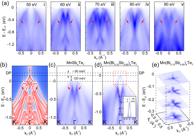 图3: MnSb4Te7能带结构测量结果