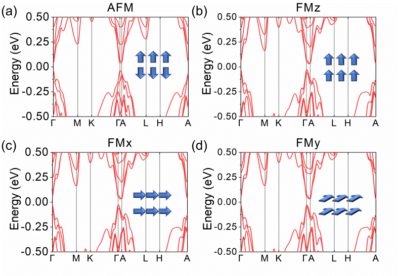 在一些磁性材料中,其磁结构的自旋方向能够被外磁场调控,当自旋-轨道耦合较强时,自旋结构的改变能够有效传递给电子,从而可能导致电子结构变化甚至相变。这种外磁场可控电子结构变化或相变为设计灵活可控的自旋电子学器件提供了极大便利。在当前凝聚态物理重要研究领域-拓扑物理学中,磁性与非平庸拓扑能带之间的关联已经成为一个重要但又富有挑战性的研究课题,迄今尚未有全局的清晰图像,但是它们之间的相互作用导致的丰富拓扑物性为探索新物理与新应用提供了巨大契机,吸引了凝聚态物理学家们广泛的研究兴趣。