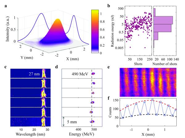 中国科学院上海光学精密机械研究所强场激光物理国家重点实验室,利用自行研制的具有国际领先综合性能的超强超短激光装置,在基于激光加速器的小型化自由电子激光研究方面取得突破性进展。研究团队通过显著提升激光尾波场加速的电子束品质,并结合创新设计的紧凑型束流传输与辐射系统,实验上首次实现了基于激光加速器的自由电子激光放大输出,典型激光波长27nm,最短激光波长可达10nm级,单脉冲能量可达100nJ级,国际率先完成了台式化自由电子激光原理的实验验证,对于发展小型化、低成本自由电子激光器具有重大意义。