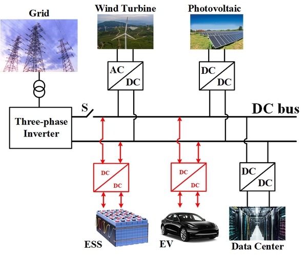 典型的直流微网架构(左)及双有源桥四移相调制方法的控制效果(右)
