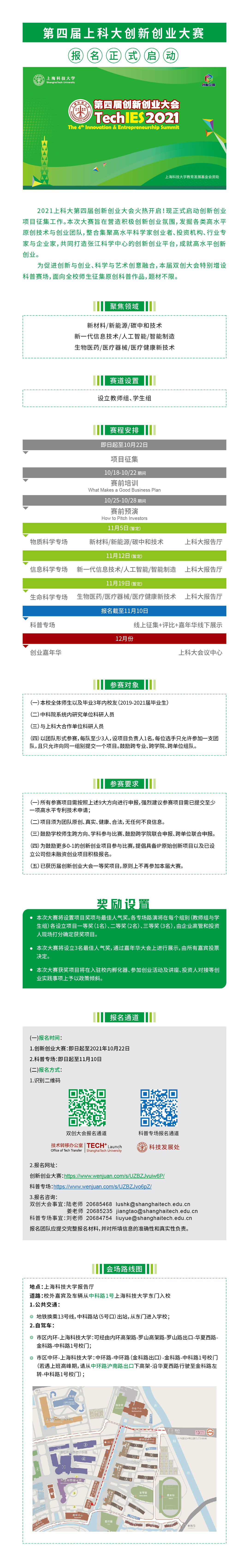 1. 报名时间:创新创业大赛:今日至10月22日。科普大赛专场:今日至11月10日。
