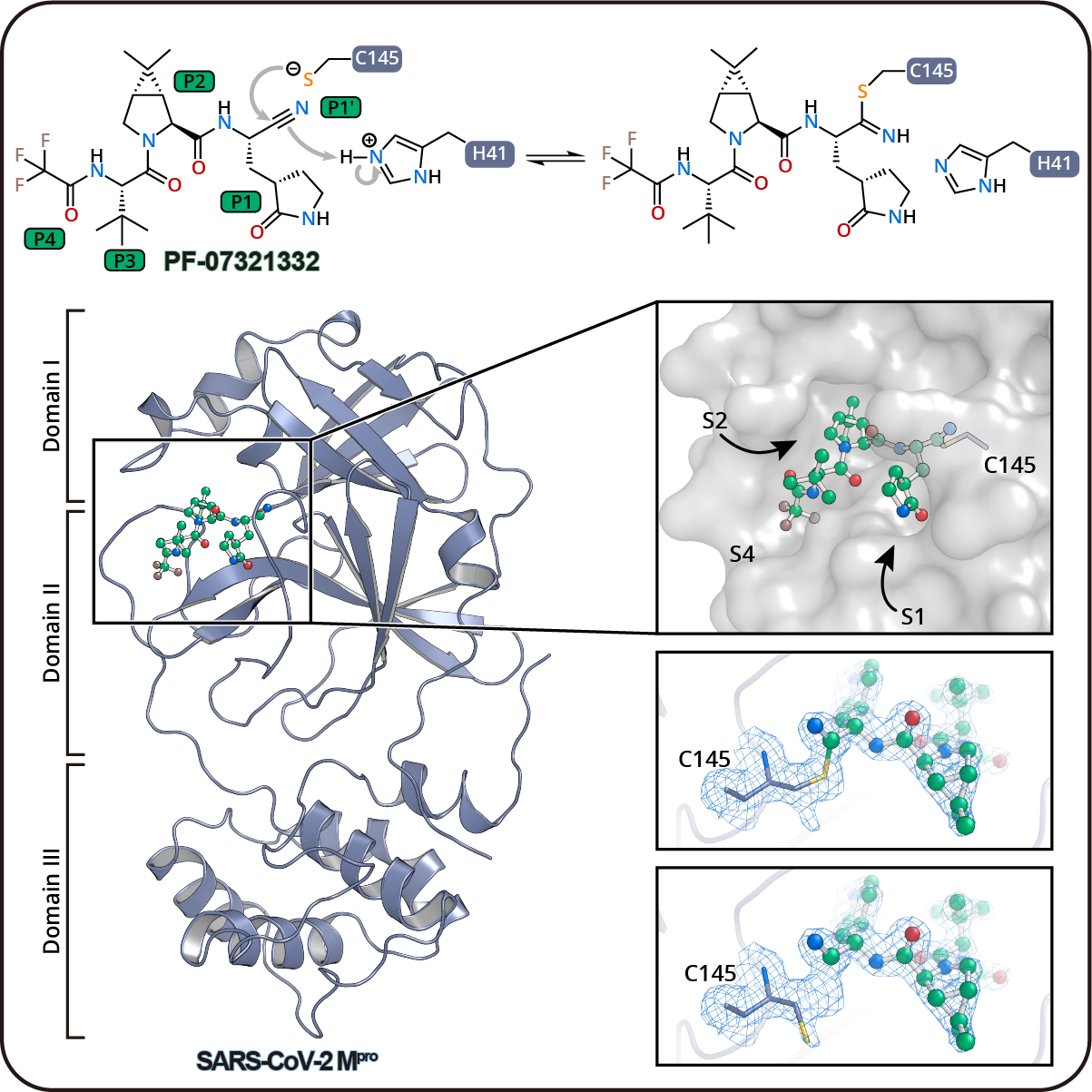 新冠病毒主蛋白酶与抑制剂PF-07321332的复合物结构