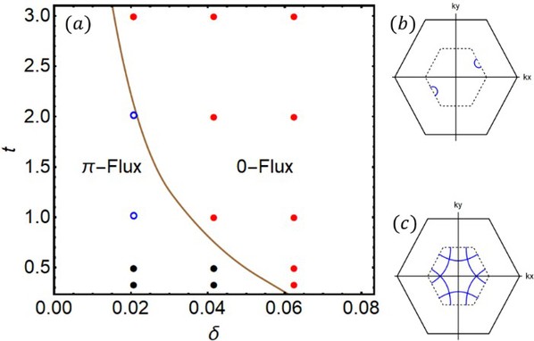 (a) 笼目晶格自旋液体掺杂后的相图; (b-c) Bogoliubov准粒子费米面。