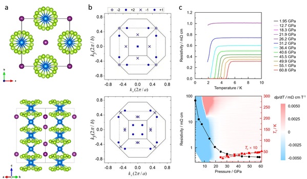 图 | (NbSe4)2I的晶体结构、Weyl点分布图以及高压下超导转变。