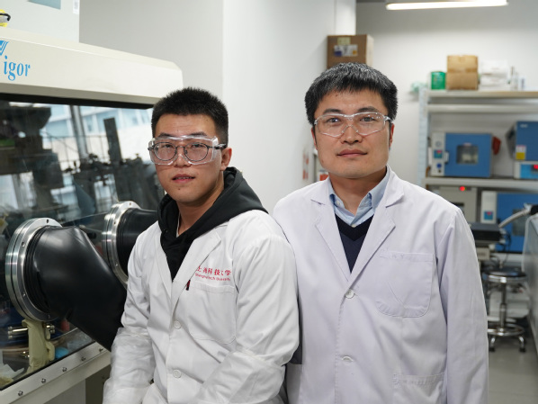 图. 论文作者朱子豪(左)与米启兮在实验室