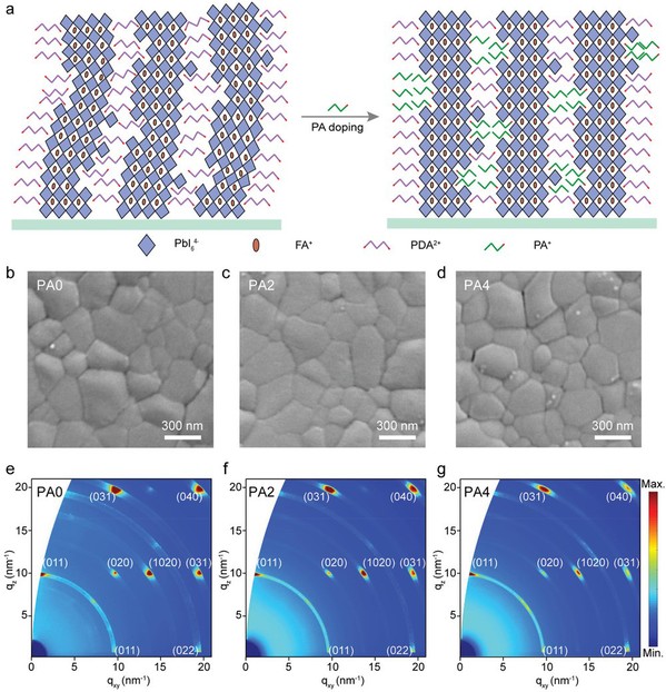 图一:调控有机层间隔阳离子制备高品质甲脒基低维钙钛矿薄膜。