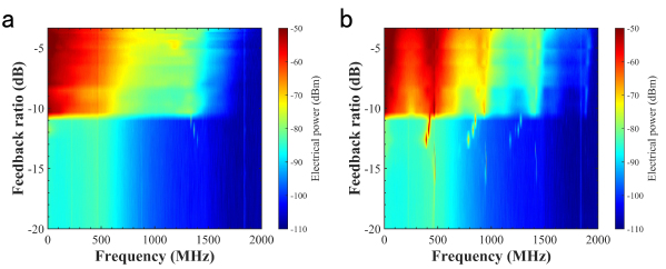王成课题组长期致力于中红外波段带间级联激光器的研究。课题组通过对带间级联激光器施加合适的外部控制条件,成功开发出中红外宽带超混沌光源(图一)。通过Lyapunov谱线分析发现该混沌源具有三个正值的Lyapunov指数,即其为超混沌(hyperchaos),超混沌具有高维的复杂性和不可预测性。通过频域分析表明该混沌源的特征频率高达吉赫兹的量级(图二),意味着其能够高速处理和传输信息。由于大气在中红外波段存在低损耗的通信窗口(3至5微米,8至12微米),未来中红外激光混沌在自由空间保密光通信以及远程混沌激光雷达等诸多领域具有极大的应用前景。