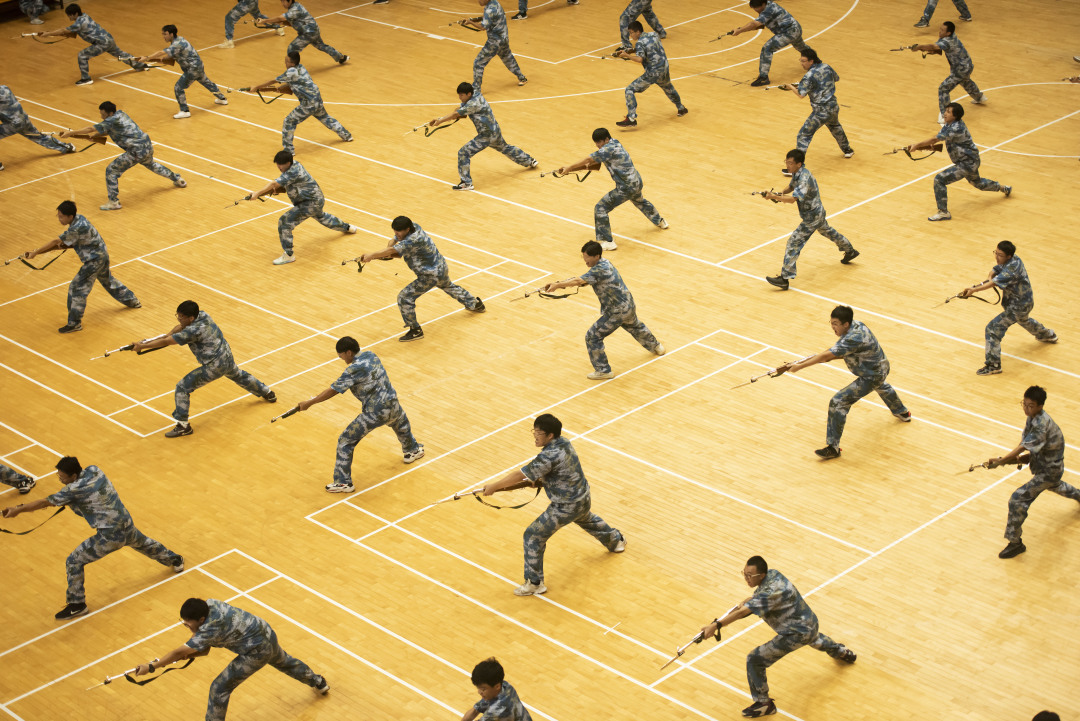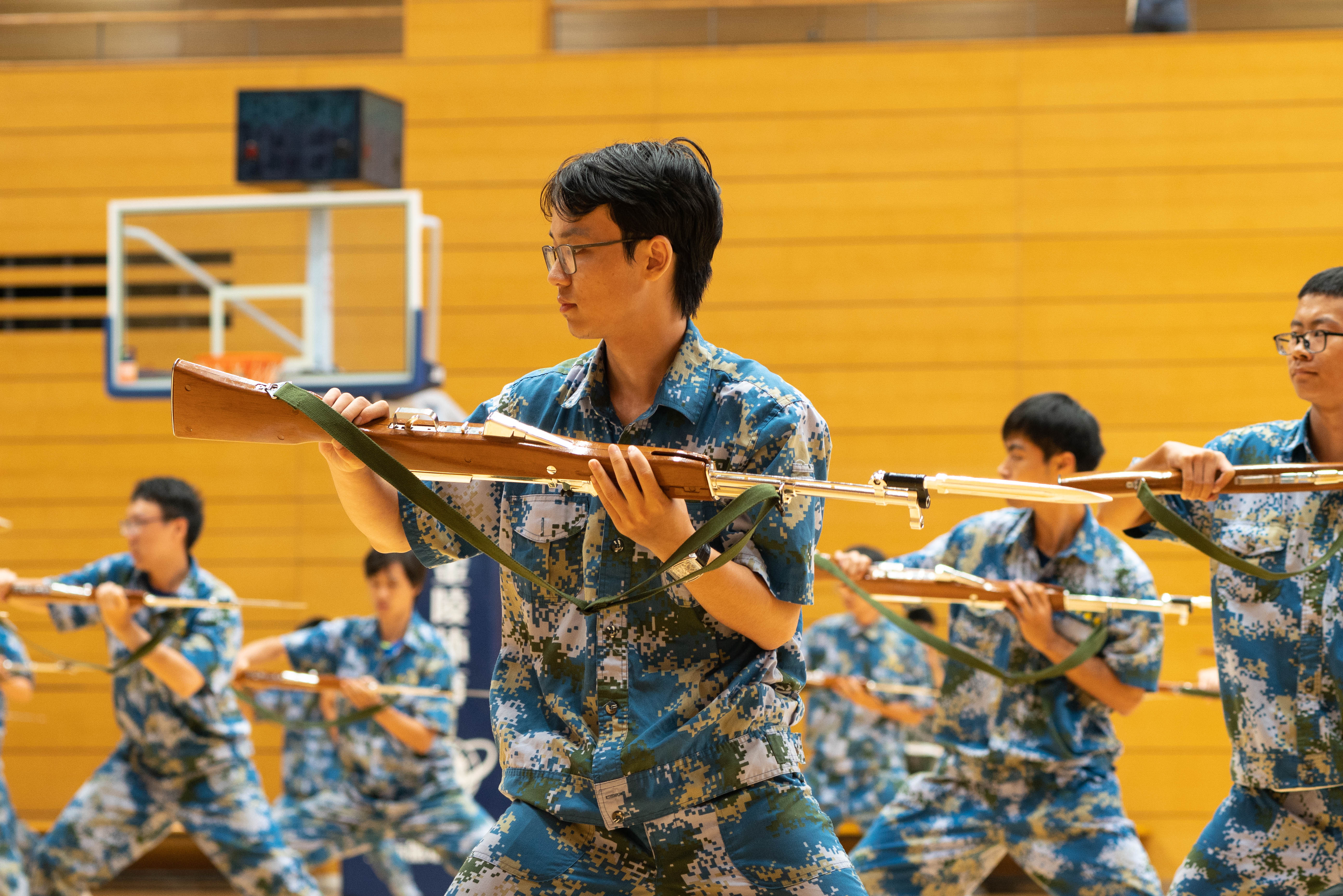 突、刺、架、搏、踢,招招凌厉;闪、转、腾、挪、移,身形灵巧。刺杀操的队员们个个眼神凌厉,动作迅猛。他们握着重枪,从最基础的一招一式开始学起,反复训练,直到将动作融会贯通,培养了同学们勇敢顽强的战斗作风。一突一刺,一防一击,队员们杀声整天,豪情满怀。锃亮的刺刀上,闪耀着同学们的辛勤汗水,映射出顽强拼搏的精神。
