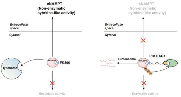 图1. 靶向NAMPT蛋白的PROTAC降解剂同时阻断酶活和非酶活性
