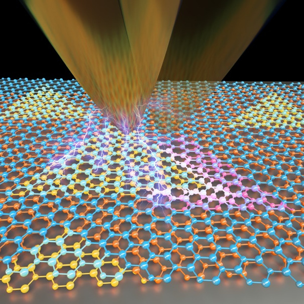 图一:探针通过转角氮化硼产生隧穿电流的示意图。