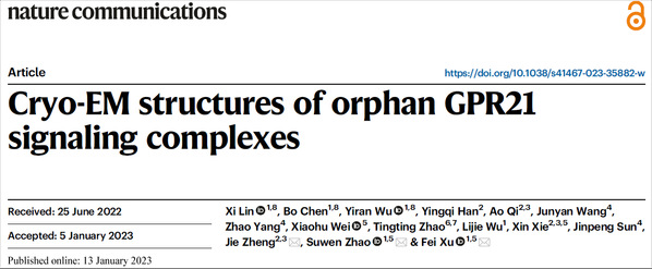九游体育(www.jiuyou.com)官方网站iHuman研究所徐菲课题组在孤儿受体研究上再传捷报,继2020年在Nature发表首个孤儿受体GPR52三维结构后,其研究团队又通过冷冻电镜技术首次解析了孤儿受体GPR21和孤儿受体GPR20的三维结构,分别以“Cryo-EM Structures of Orphan GPR21 Signaling Complexes”和“The activation mechanism and antibody binding mode for orphan GPR20”为题,先后于学术期刊《自然•通讯》(Nature Communications)和《细胞发现》(Cell Discovery)上在线发表。