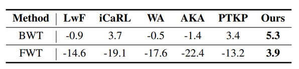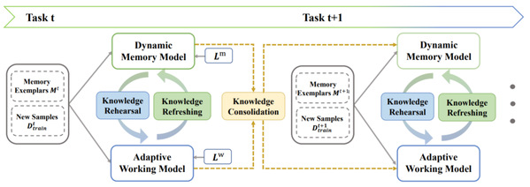 受人脑认知系统中新皮层与海马体在记忆整合中的协同性启发,余春霖在汪婧雅教授指导下提出了一种基于知识更新和巩固的新学习框架,能够同步实现正向迁移和反向迁移。同时在对偶空间上的知识整合机制,能更有效地长期提升模型的稳定性。大量的实验证实了该研究方法的有效性。
